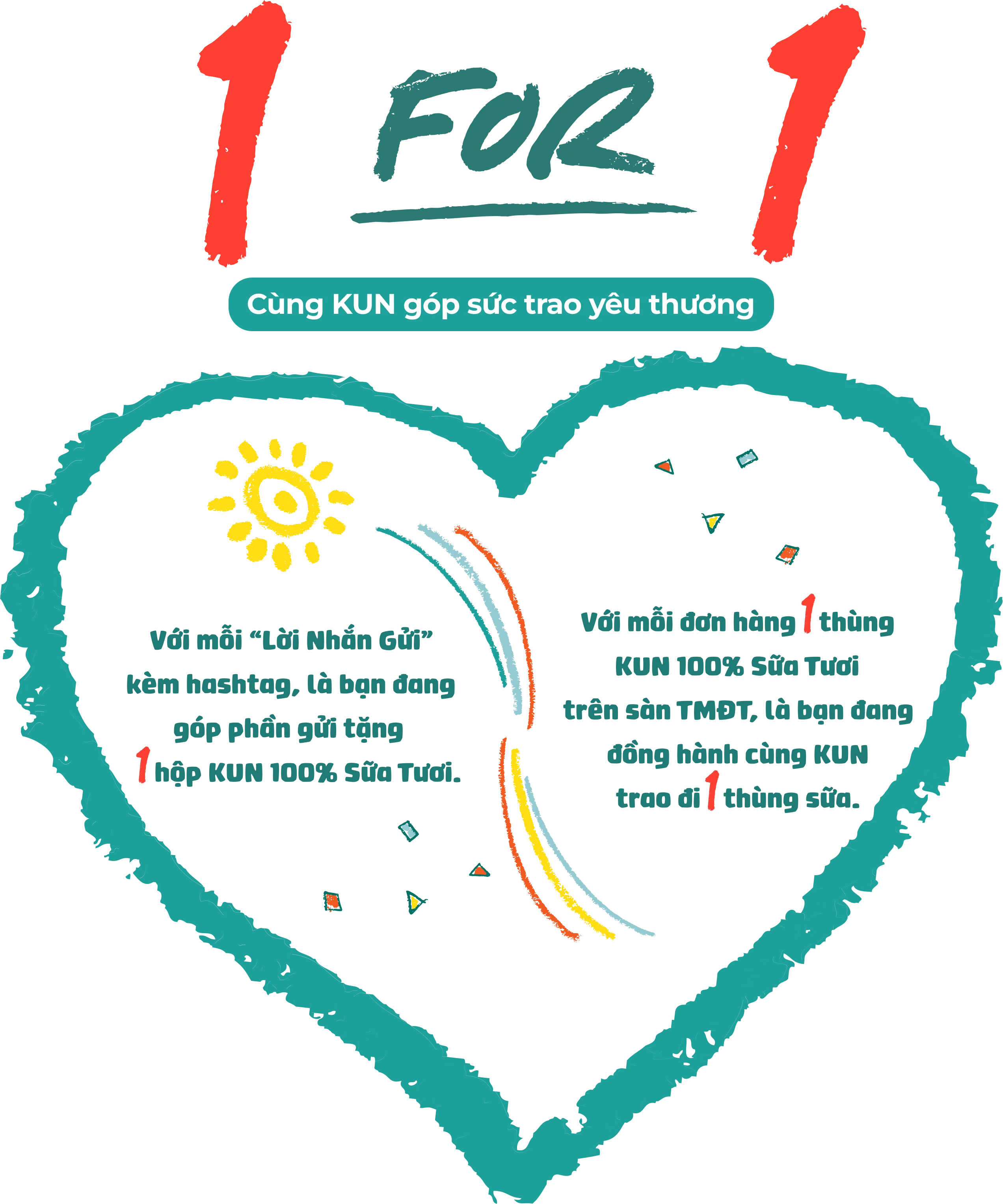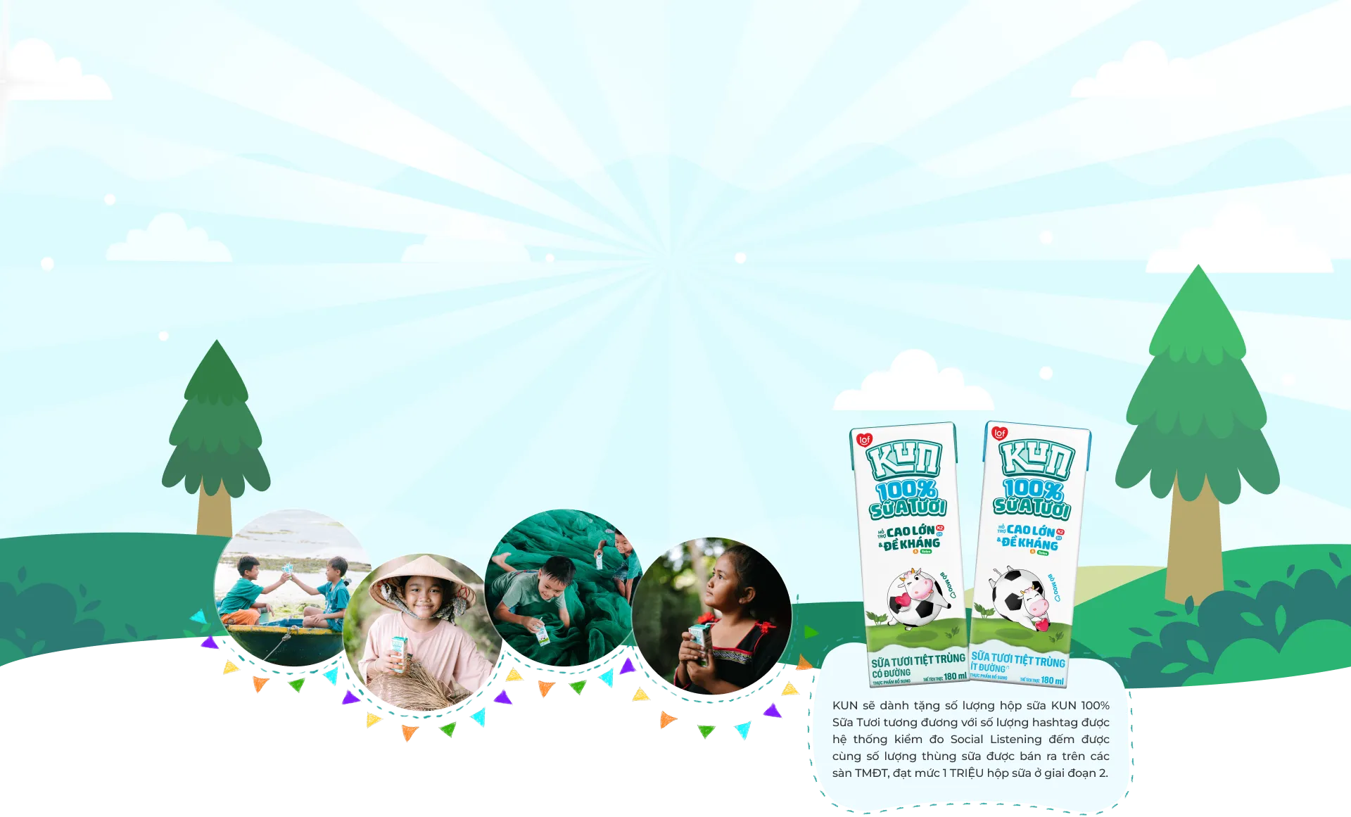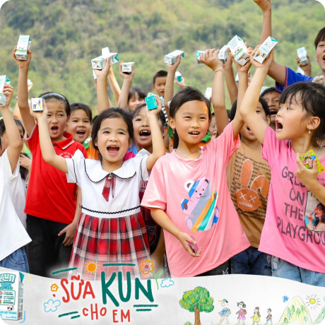 Mua 01 thùng KUN 100% Sữa Tươi trên Shopee/Lazada/ Tiktok Shop đồng nghĩa với việc bạn đã cùng KUN đóng góp 1 thùng KUN 100% Sữa Tươi cho các em bé ở vùng miền xa xôi khó khăn của tổ quốc.